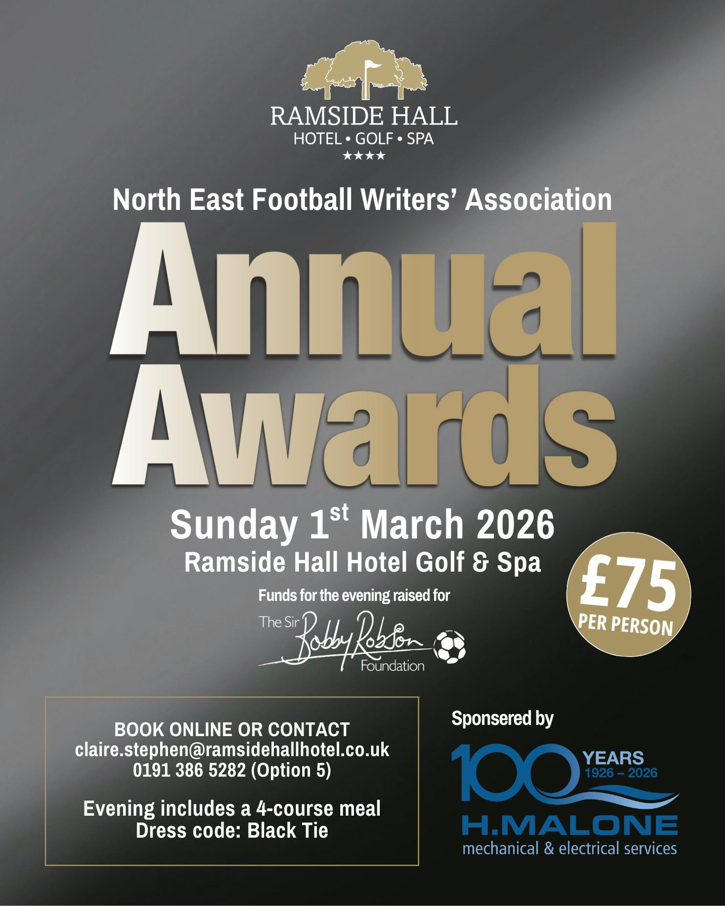 Join us for an evening that celebrates the very best of North East football. The annual awards bring together players, journalists and supporters for a memorable occasion, all while raising funds for The Sir Bobby Robson Foundation.